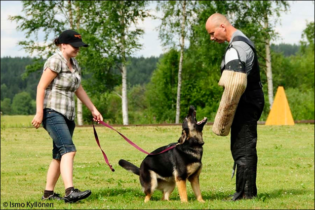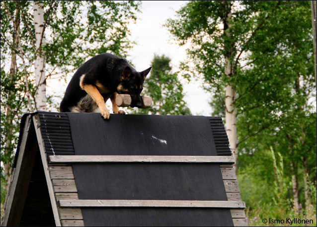 Käytiin Kiusan kanssa suorittamassa molempien ihka ensimmäinen suojelukoe 23.7. Lieksassa (BH-koe suoritettiin "jo" kesäkuussa Oulun suuntamilla). Ohjaajaa jännitti aivan valtavasti, eikä viikkoa aiemmin ilmestyneet jäljestysongelmat ainakaan helpottaneet asiaa. Mutta niin vaan siitä hengissä selvittiin, vaikkei nyt ihan niin loistavasti kuin olisin toivonut. Tässä pieni referaatti kokeesta: